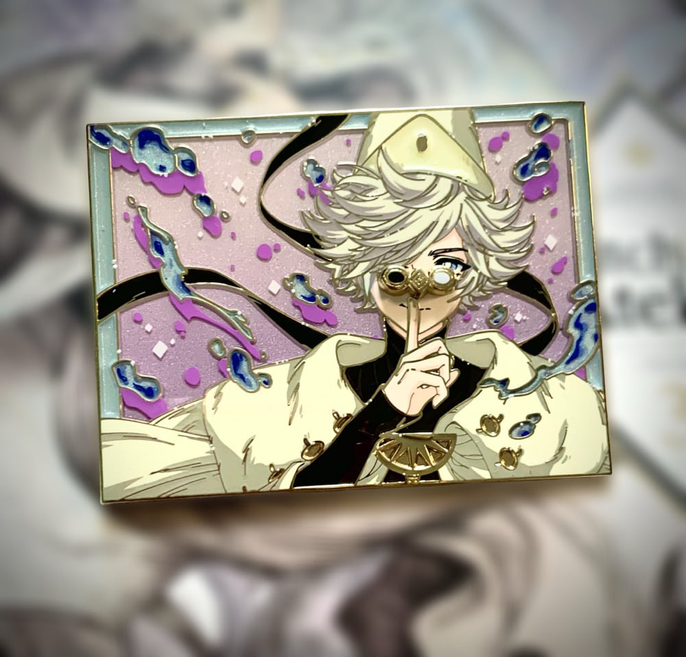 That dastardly twink, Qifrey from Witch Hat Atelier has now been transformed into a metallic pin with some kind of forbidden magic..!!!